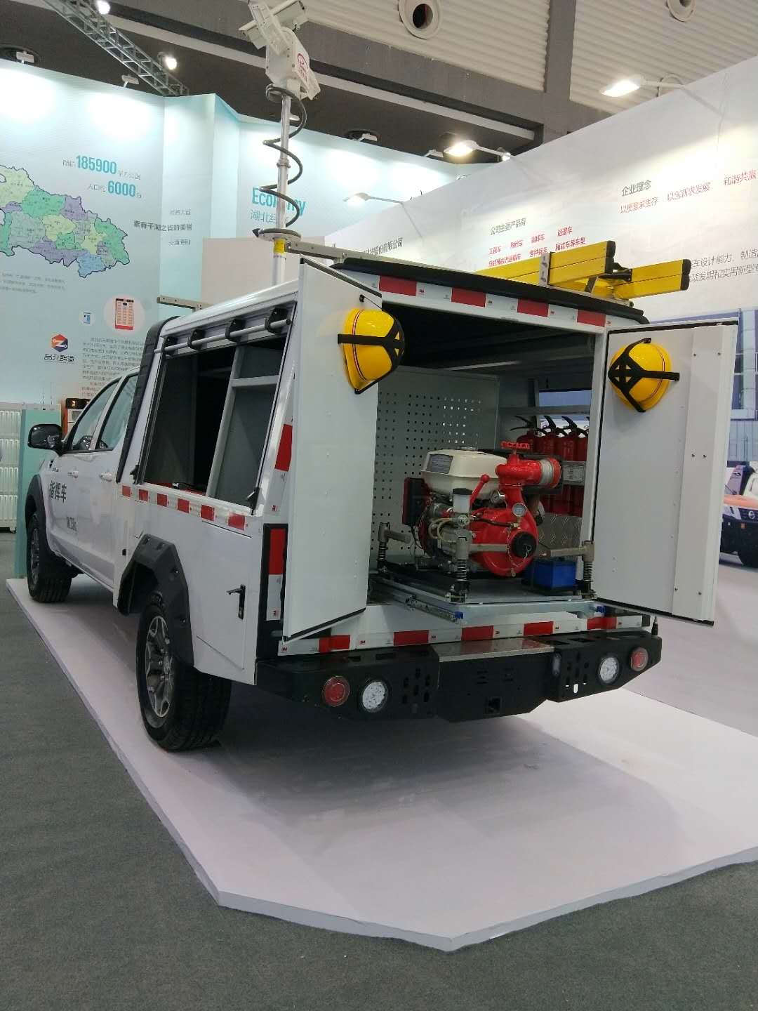 本屆絲博會上,震序車船展出了微型高機動應(yīng)急指揮車。該車搭載了車載供電供氣、移動照明攝錄、翻轉(zhuǎn)式折疊絕緣梯、高壓消防水泵等應(yīng)急救援專用設(shè)備,良好的機動應(yīng)急性能與集成化、便捷化、輕量化的設(shè)計獲得了參展領(lǐng)導(dǎo)與嘉賓的好評。
