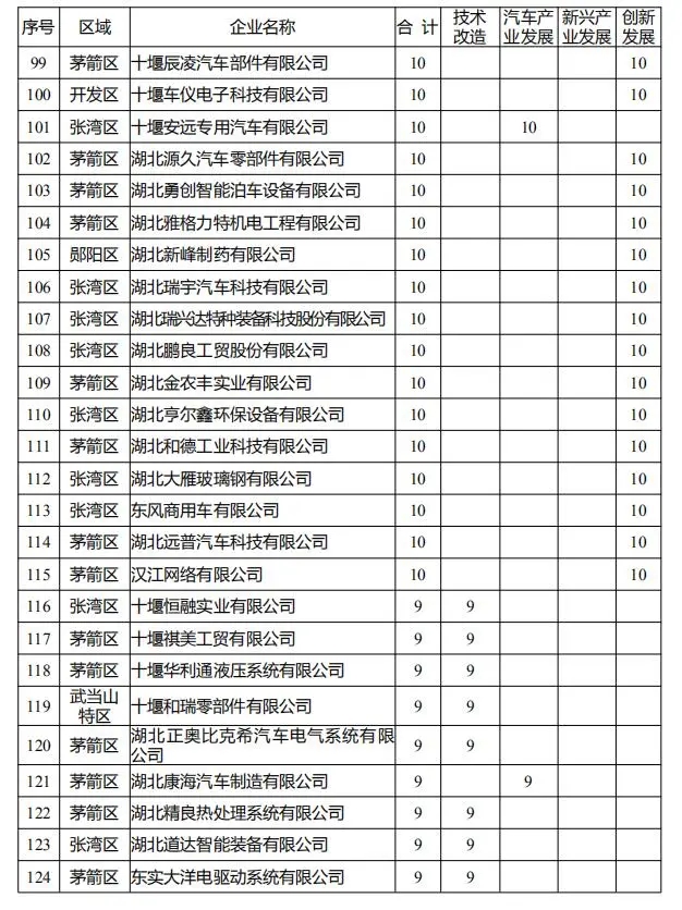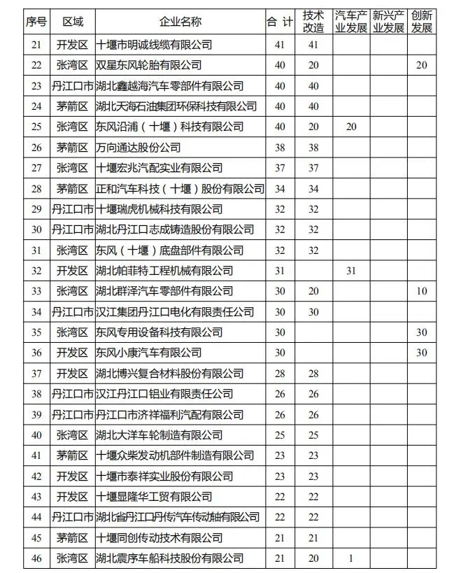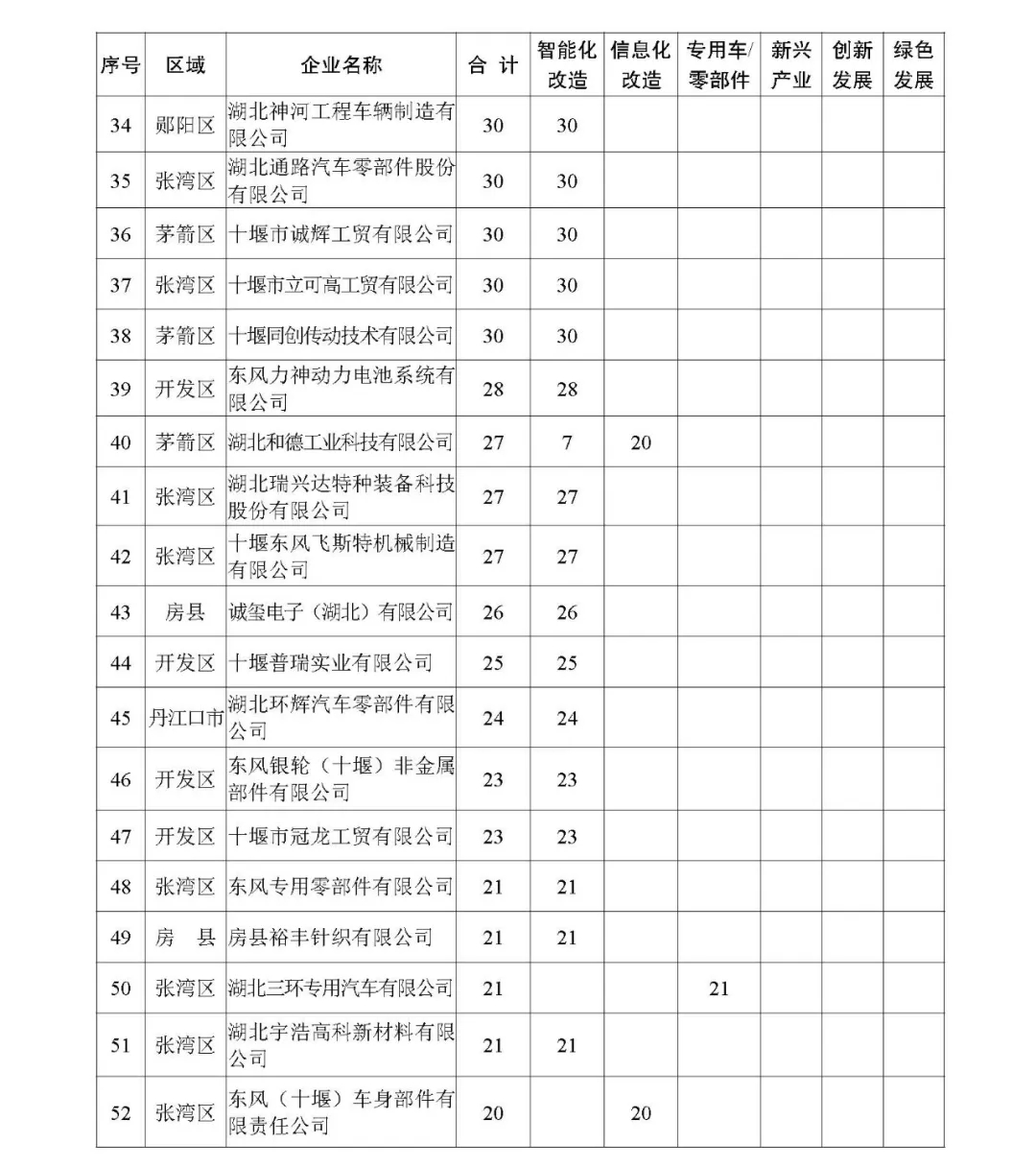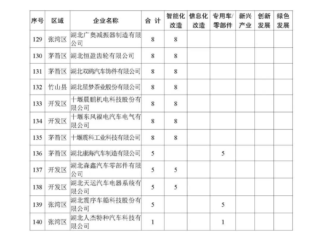 十堰聯(lián)瑞工貿(mào)有限公司、十堰擎邦機(jī)械設(shè)備有限公司、湖北笛奧工貿(mào)有限公司、十堰市博利汽車零部件有限公司、十堰達(dá)大盛工貿(mào)有限公司、湖北西卡達(dá)工貿(mào)有限公司、壹緯度新能源汽車(湖北)有限公司、十堰弘洺工貿(mào)有限公司、湖北釘釘汽車配件有限公司、湖北秀山智能科技股份有限公司、湖北鑫振亞實(shí)業(yè)有限公司、派恩(十堰)汽車空調(diào)有限公司、十堰衡豐工貿(mào)有限公司、湖北藍(lán)鳥工貿(mào)有限公司、十堰山特工貿(mào)有限公司、湖北峰辰工貿(mào)有限公司、湖北松港汽車科技有限公司。