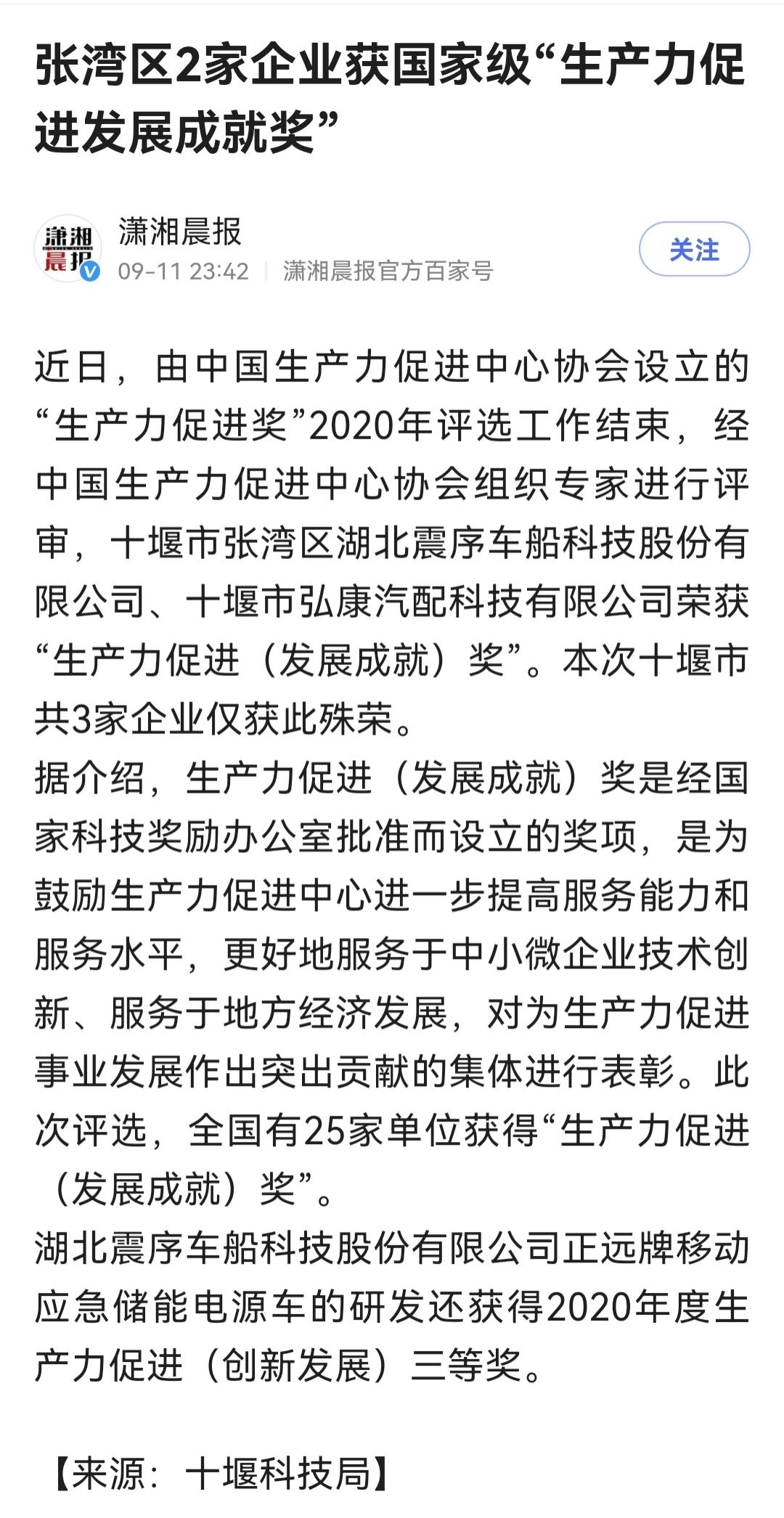 在此次評(píng)選中湖北震序車船科技股份有限公司榮獲了全國(guó)“生產(chǎn)力促進(jìn)(發(fā)展成就)獎(jiǎng)”,公司“正遠(yuǎn)牌移動(dòng)應(yīng)急儲(chǔ)能電源車的研發(fā)”項(xiàng)目還榮獲了全國(guó)“2020年度生產(chǎn)力促進(jìn)(創(chuàng)新發(fā)展)三等獎(jiǎng)”。