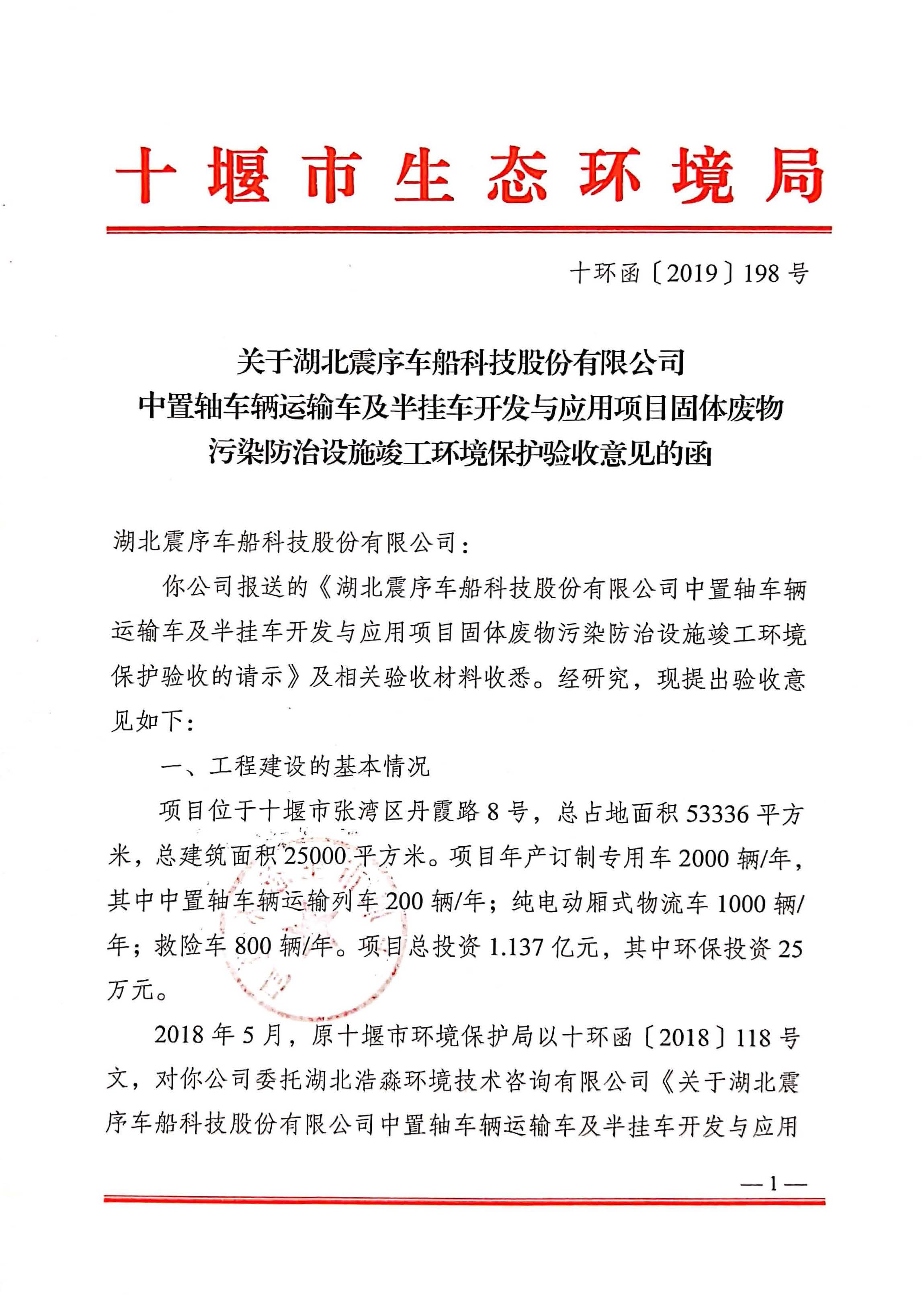 震序車船固體廢物污染防治設(shè)施竣工環(huán)境保護(hù)驗收意見函
